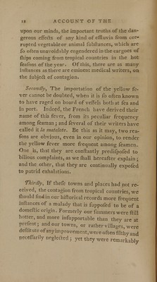 Credit: An account of the contagious epidemic yellow fever, which prevailed in Philadelphia in the summer and autumn of 1797 : comprising the questions of its causes and domestic origin, characters, medical treatment, and preventives / by Felix Pascalis Ouviere, M.D. ; corresponding member of the Medical Society of Connecticut, and resident member of the Philadelphia Academy of Medicine. Source: Wellcome Collection.