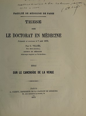 Credit: Essai sure le cancroïde de la verge ... / par G. Villiès. Source: Wellcome Collection.
