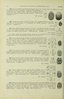 Credit: Catalogue of Egyptian scarabs, etc., in the British Museum / by H.R. Hall. Printed by order of the Trustees. Source: Wellcome Collection.