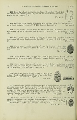 Credit: Catalogue of Egyptian scarabs, etc., in the British Museum / by H.R. Hall. Printed by order of the Trustees. Source: Wellcome Collection.