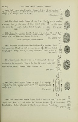 Credit: Catalogue of Egyptian scarabs, etc., in the British Museum / by H.R. Hall. Printed by order of the Trustees. Source: Wellcome Collection.