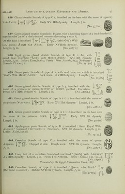 Credit: Catalogue of Egyptian scarabs, etc., in the British Museum / by H.R. Hall. Printed by order of the Trustees. Source: Wellcome Collection.
