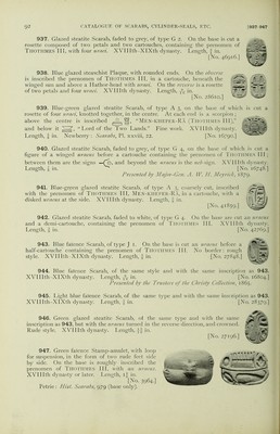 Credit: Catalogue of Egyptian scarabs, etc., in the British Museum / by H.R. Hall. Printed by order of the Trustees. Source: Wellcome Collection.