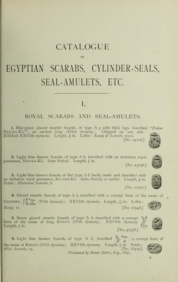 Credit: Catalogue of Egyptian scarabs, etc., in the British Museum / by H.R. Hall. Printed by order of the Trustees. Source: Wellcome Collection.