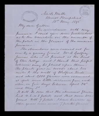 Provider: The original material is held at UCL Special Collections. This catalogue is held by the Wellcome Library as part of Codebreakers: Makers of Modern Genetics.