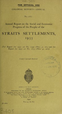 Annual report on the social and economic progress of the people of the Straits Settlements.
