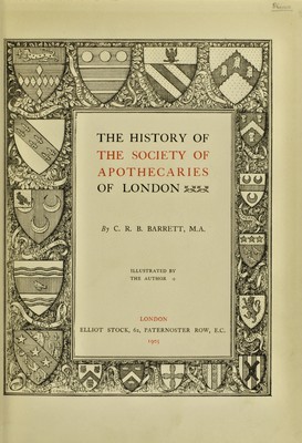 The history of the Society of apothecaries of London / by C.R.B. Barrett, M.A. Illustrated by the author.