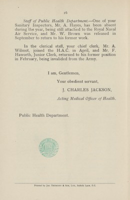 Credit: [Report of the Medical Officer of Health for Hammersmith]. Source: Wellcome Collection.