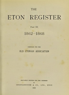The Eton register. Pts. 1-5, 1841-1889. Source: