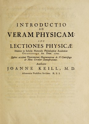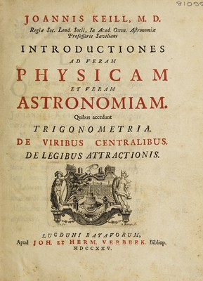 Introductiones ad veram physicam et veram astronomiam. Quibus accedunt Trigonometria. De viribus centralibus. De legibus attractionis / [John Keill].