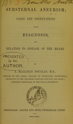 Substernal aneurism : cases and observations on its diagnosis, and relation to disease of the heart / by A. Halliday Douglas.