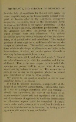 Physiology, the servant of medicine : chloroform in the laboratory and in the hospital / [Augustus D. Waller].