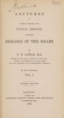Credit: Lectures on subjects connected with clinical medicine, comprising diseases of the heart / [P. Mere Latham]. Source: Wellcome Collection.