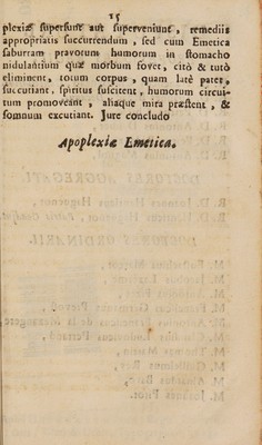 Credit: Quaestio medica eaque therapeutica, / proposita ab illustrissimo viro D. D. Jacobo Chastelain, ... ; sub hac verborum serie, ; an apoplexia emetica. ; Quam deo savente & auspice deiparâ, propugnabit in augustissimo Monspeliensis Apollinis Fano die Julii, ab horâ octavâ ad meridianam anni 1715. Antonius Josephus Salmon, ... ; pro primâ Apollinari Laureâ consequenda. Source: Wellcome Collection.
