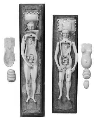M0018653EB: Anatomical figures in ivory; two pregnant females