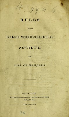 Credit: Rules of the College Medico-Chirurgical Society, and list of members. Source: Wellcome Collection.