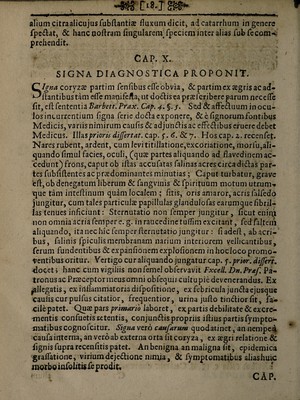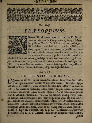 Credit: Dissert. medica posterior, de coryza sicca ... / praeside, Elia Rudolpho Camerario ... publico eruditorum examini subjiciet Johan. Christianus Hummel ... Anni 1689. Source: Wellcome Collection.