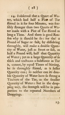 Credit: An account of some experiments and observations on tar-water: wherein is shown the quantity of tar that is therein. And also a method proposed, both to abate that quantity considerably, and to ascertain the strength of the tar-water / Which was read before the Royal society. By Stephen Hales. Source: Wellcome Collection.