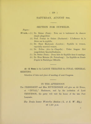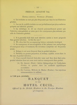 Credit: Programme of the third International Congress of Dermatology : (London, August 4th to 8th, 1896) : held in the examination hall of the Conjoint Colleges, Victoria Embankment, W.C. Source: Wellcome Collection.
