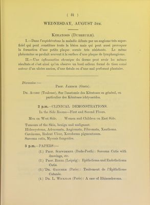 Programme of the third International Congress of Dermatology : (London, August 4th to 8th, 1896) : held in the examination hall of the Conjoint Colleges, Victoria Embankment, W.C.