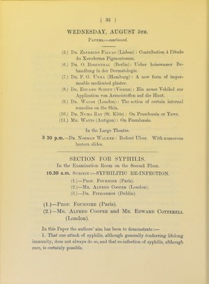 Credit: Programme of the third International Congress of Dermatology : (London, August 4th to 8th, 1896) : held in the examination hall of the Conjoint Colleges, Victoria Embankment, W.C. Source: Wellcome Collection.