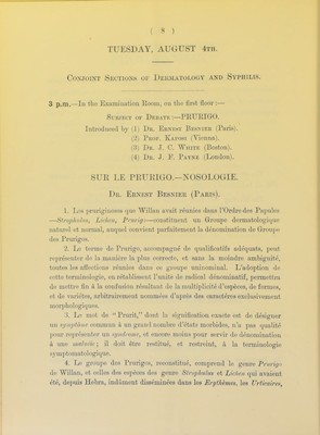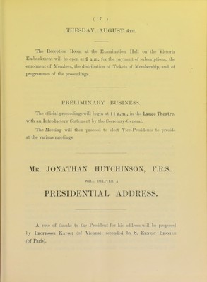 Credit: Programme of the third International Congress of Dermatology : (London, August 4th to 8th, 1896) : held in the examination hall of the Conjoint Colleges, Victoria Embankment, W.C. Source: Wellcome Collection.