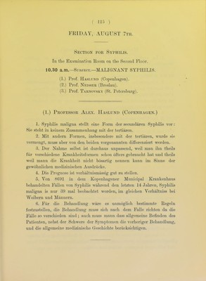 Credit: Programme of the third International Congress of Dermatology : (London, August 4th to 8th, 1896) : held in the examination hall of the Conjoint Colleges, Victoria Embankment, W.C. Source: Wellcome Collection.