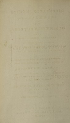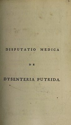 Credit: Disputatio medica inauguralis de dysenteria putrida. Quam ... ex auctoritate ... Gulielmi Robertson ... Academiæ edinburgenæ præfecti ... pro gradu doctoratus ... / eruditorum examini subjicit Christophorus Douglas, Britannus. Ad diem maii [1766]. Source: Wellcome Collection.
