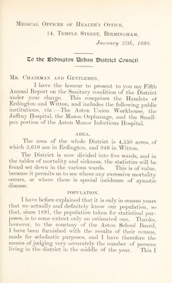 [Report 1898] / Medical Officer of Health, Erdington U.D.C.