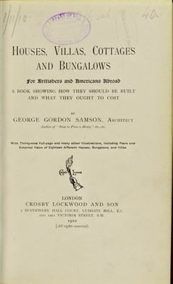 Houses, villas, cottages and bungalows : for Britishers and Americans abroad / by George Gordon Samson.