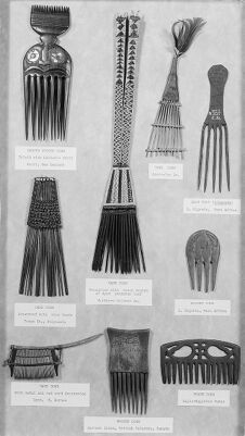 Credit: M0016055: Wellcome Historical Medical Museum display of nine combs from various parts of the world. Source: Wellcome Collection.
