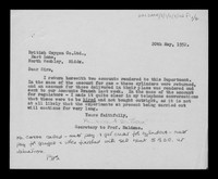 Letter from J B S Haldane's Secretary to British Oxygen Co. Ltd.