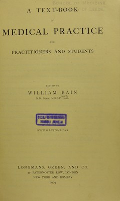 A Text-book of medical practice for practitioners and students / edited by William Bain.