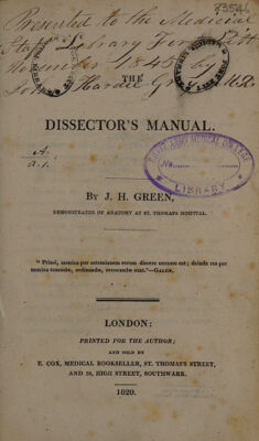 Credit: The dissector's manual / By J.H. Green. Source: Wellcome Collection.