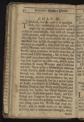 Credit: Aristotle's master-piece: or, The secrets of generation displayed in all the parts thereof. : Containing 1. The signs of barrenness. 2. The way of getting a boy or girl. 3. Of the likeness of children to parents. 4. Of the infusion of the soul into the infant. 5. Of monstrou births, and the reasons thereof. 6. Of the benefit of marriage to both sexes. 7. The prejudice of unequal matches. 8. The discovery of insufficiency. 9. The cause and cure of the green-sickness. 10. A discourse of virginity. 11. How a midwife ought to be qualified. 12. Directions and cautions to midwives. 13. Of the organs of generation in women 14. The fabrick of the womb. 15. The use and action of the genitals. 16. Signs of conception, and whether of a male or female. 17. To discover false conception. 18. Instructions for women with child. 19. For preventing miscarriage. 20. For women in child-bed. 21. Of ordering new-born infants, and many other very useful particulars. To which is added, a word of advice to both sexes in the act of copulation, and the pictures of several monstrous births. Very necessary for all midwives, nurses, and young-married women. Source: Wellcome Collection.