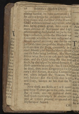 Credit: Aristotle's master-piece: or, The secrets of generation displayed in all the parts thereof. : Containing 1. The signs of barrenness. 2. The way of getting a boy or girl. 3. Of the likeness of children to parents. 4. Of the infusion of the soul into the infant. 5. Of monstrou births, and the reasons thereof. 6. Of the benefit of marriage to both sexes. 7. The prejudice of unequal matches. 8. The discovery of insufficiency. 9. The cause and cure of the green-sickness. 10. A discourse of virginity. 11. How a midwife ought to be qualified. 12. Directions and cautions to midwives. 13. Of the organs of generation in women 14. The fabrick of the womb. 15. The use and action of the genitals. 16. Signs of conception, and whether of a male or female. 17. To discover false conception. 18. Instructions for women with child. 19. For preventing miscarriage. 20. For women in child-bed. 21. Of ordering new-born infants, and many other very useful particulars. To which is added, a word of advice to both sexes in the act of copulation, and the pictures of several monstrous births. Very necessary for all midwives, nurses, and young-married women. Source: Wellcome Collection.
