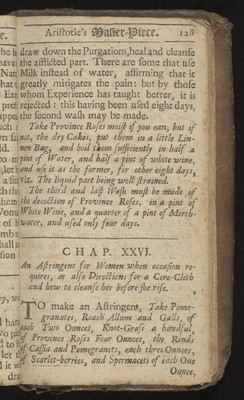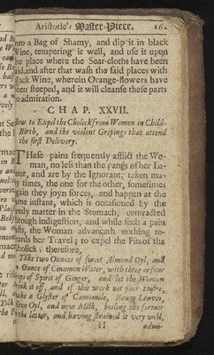 Aristotle's master-piece: or, The secrets of generation displayed in all the parts thereof. : Containing 1. The signs of barrenness. 2. The way of getting a boy or girl. 3. Of the likeness of children to parents. 4. Of the infusion of the soul into the infant. 5. Of monstrou births, and the reasons thereof. 6. Of the benefit of marriage to both sexes. 7. The prejudice of unequal matches. 8. The discovery of insufficiency. 9. The cause and cure of the green-sickness. 10. A discourse of virginity. 11. How a midwife ought to be qualified. 12. Directions and cautions to midwives. 13. Of the organs of generation in women 14. The fabrick of the womb. 15. The use and action of the genitals. 16. Signs of conception, and whether of a male or female. 17. To discover false conception. 18. Instructions for women with child. 19. For preventing miscarriage. 20. For women in child-bed. 21. Of ordering new-born infants, and many other very useful particulars. To which is added, a word of advice to both sexes in the act of copulation, and the pictures of several monstrous births. Very necessary for all midwives, nurses, and young-married women.