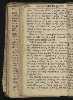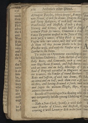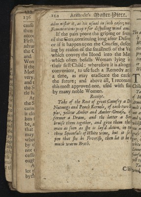 Credit: Aristotle's master-piece: or, The secrets of generation displayed in all the parts thereof. : Containing 1. The signs of barrenness. 2. The way of getting a boy or girl. 3. Of the likeness of children to parents. 4. Of the infusion of the soul into the infant. 5. Of monstrou births, and the reasons thereof. 6. Of the benefit of marriage to both sexes. 7. The prejudice of unequal matches. 8. The discovery of insufficiency. 9. The cause and cure of the green-sickness. 10. A discourse of virginity. 11. How a midwife ought to be qualified. 12. Directions and cautions to midwives. 13. Of the organs of generation in women 14. The fabrick of the womb. 15. The use and action of the genitals. 16. Signs of conception, and whether of a male or female. 17. To discover false conception. 18. Instructions for women with child. 19. For preventing miscarriage. 20. For women in child-bed. 21. Of ordering new-born infants, and many other very useful particulars. To which is added, a word of advice to both sexes in the act of copulation, and the pictures of several monstrous births. Very necessary for all midwives, nurses, and young-married women. Source: Wellcome Collection.
