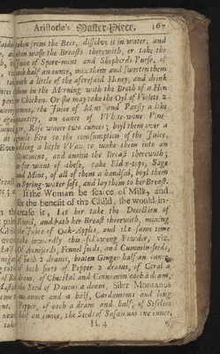 Credit: Aristotle's master-piece: or, The secrets of generation displayed in all the parts thereof. : Containing 1. The signs of barrenness. 2. The way of getting a boy or girl. 3. Of the likeness of children to parents. 4. Of the infusion of the soul into the infant. 5. Of monstrou births, and the reasons thereof. 6. Of the benefit of marriage to both sexes. 7. The prejudice of unequal matches. 8. The discovery of insufficiency. 9. The cause and cure of the green-sickness. 10. A discourse of virginity. 11. How a midwife ought to be qualified. 12. Directions and cautions to midwives. 13. Of the organs of generation in women 14. The fabrick of the womb. 15. The use and action of the genitals. 16. Signs of conception, and whether of a male or female. 17. To discover false conception. 18. Instructions for women with child. 19. For preventing miscarriage. 20. For women in child-bed. 21. Of ordering new-born infants, and many other very useful particulars. To which is added, a word of advice to both sexes in the act of copulation, and the pictures of several monstrous births. Very necessary for all midwives, nurses, and young-married women. Source: Wellcome Collection.