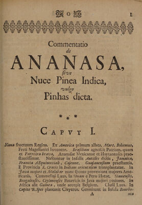 Michaelis Friderici Lochneri archiatr. caes. com. Palat. ... Commentatio de ananasa sive nuce pinea Indica vulgo pinhas / Ad ... Hesperidum Norimbergensium scriptorem [J.C. Volckamer].