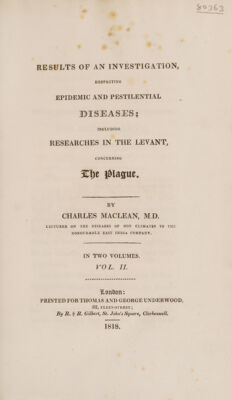 Results of an investigation respecting epidemic and pestilential diseases; including researches in the Levant, concerning the plague / By Charles Maclean.