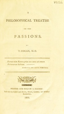 Credit: A philosophical treatise on the passions ... / [T. Cogan]. Source: Wellcome Collection.