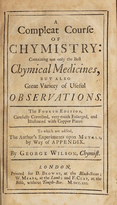 A compleat course of chymistry; containing not only the best chymical medicines, but also great variety of useful observations / [George Wilson].