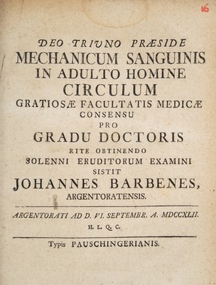 Mechanicum sanguinis in adulto homine circulum ... / sistit Johannes Barbenes.