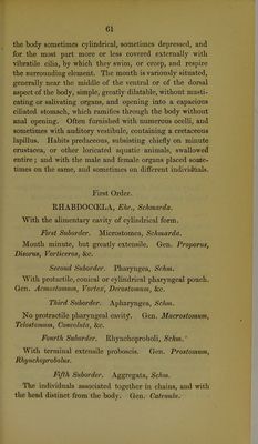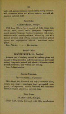 ![/ TABULAR VIEW OP THE PRIMARY DIVISIONS OF THE ANIMAL KINGDOM, INTENDED TO SERVE AS AN OUTLINE OF AN ELEMENTARY COUESE OP RECENT ZOOLOGY (CAINOZOOLOGY), ,4 |^ % ,9/ OR THE NATURAL HISTORY OP EXISTING ANi:^- BY ROBERT E. GRANT, M.D. (Edin. ]814)j Fellow of the Hoyal Societies of London and Edinburgh; Fellow of the Hoyal College of PhyBiciana of Edinburgh ; Licentiate of the Eoyal CoUcge of Surgeons of Edinliurgh (18M); lat<! t*rc3id(>nt of the Hoyal MiMlioal Society of Ed'inliurgh (ISM) ; Honorary Member of the Royal Zoological Socifty of Ireland, of the Statistical Society of Paris, of the Medical Society of London, of the Literary and Philosoohical Society of Leeds, &e.; Fellow (and formerly of the Council) of the Linnsean (1820), tne Geological, and thi^ Zoological Societies of London; Corresponding Jfember of the Medical Society of Athens, of the lioyiil Society of Seieneea of Liege, of the Biological Society of Paris; Member of the Medico Cliirurgical, the 13otanical, and the Koyal I'hysical Soeietic^s of Edinburgh; late Lecturer on Comparative Anatomy at Edinburgh (1821); late Fullerian Professor of Physiology in the Koyal Institution of Great Britain (1837); late Swincyan Lecturer on PaliDOzoology in connexion with the British Museum (1862); and Professor of Comparative Anatomy and Zoology in Cniversity College, London (since 1827). LONDON: PUBLISHED BY WALTON AND MABERLY, UPPER OOWER STREET; AND IVY LANE, PATERNOSTER ROW. 1861. r ■](https://iiif.wellcomecollection.org/image/b22300879_0003.jp2/full/800%2C/0/default.jpg)