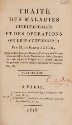 Credit: Traité des maladies chirurgicales, et des opérations qui leur conviennent / Par M. le Baron Boyer. Source: Wellcome Collection.