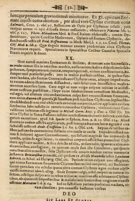 ![[.$**] liincquepericulumgraviorismaii minitentur. Ex gj. opii c uni E ne¬ mate inje&i coma obortum , per aliud vero Clyfim curatum notat Salmutb, Ccnt. 3. obf. «?7. Balbutiem ab Opio per Clyfterem infufo , poft tempus autem vi opn difcufTa denuo certantem , obfervavit Platerus hb. 1. o I. p.12,7. Thotn* Minadoum Mcd. & Prof. Italum obfervarte , omnes Dy- lentericos, qui ex Confilio Medicorum, Opiatis ufi fuerunt Clyfteriis, de- eft Fnd.Hoffmawnu in MetlrMed,!. 1. c. 10. Conf. Tboner, Ocy. Mea* 8, Ub.3. Qu* rtngula monent cautam prudentiam circa Civfteres Narcoticos requiri. Specialiores in Specialibus Calibus Cautelas Specialis Araxis requirit & docet. r XX. Utut autem maxima Enematura lit Utilitas. & tantum non Univerfalis, necreias tamen illam omnibus morbis, nulla ratione habita difpofitionisfub- 15 orum, ymptomatummatura^temporisperiodi, virium conflitutionis,&c. lemper tuto pnefcribi porte; imo in multis profatis cafibus, in quibus fue¬ runt laudata, ubi fortius Contraindicans ClyIteres vetat, aliaque impedimen¬ ta eorum adminiftrationem dilfuadent, raro felici cum fuccelTulioc medica¬ mentum accerfere licet. Cave ergo ut cum vulgo culpam rejicias in utiliflt- mumnoftrum praedium , (fxpe enim faluberrimum remedium Medicaftri, “ ve ^gri, vel aliarum circumftantiarum culpa fieri nocentiflimum Venenum, querela)fi funcftum poft in jedium ClyfteremdegibusMe- tnodiMedendi non rite obfervatis eventum notaveris,uti ex applicato cuidam icorburica labe infe&o in ventris torminibus Clyfmate, violentas mox Con- vuluoncs mfecutasefielegimus in Mifcell Gnm. Ann. 3. Dec. 1. Obf 77. Ita alius ClyIter in Iliaca Partione infufus acerbirtimos excitavit dolores, cum fan- gumis excrctione, apud lob. Specbt in Ephem. Ann. 9. & 1 o. Obf r 14. Aliud fcnemam eodem aflcftuapplicatum, poft femiquadrantem hor* ^rUm b vita rkftU 1 j Clt Andr‘ Cn6ffeliui 1*c- An• b Obf. 108. Saipius de talibus ca- iit>us judicando committitur fallacia non cauf* ut caufe. Impudentirtime au¬ tem &icelerate agunt Circumforanei, qui foliciti magis de fuo commodo St quasltu, quam de*gti falute, in omnibus corporis affetf ibus promifcue Clyf- mata applicare audent, & fine deletu ad illa, ut fors tulit, ignoratis aliis me¬ dicaminibus, confugiunt, ex quorum cenfu fuit ille Circulator, quifpretis omni us aliis remediis, folo Clyfterum ufu omnesmorbos curare temeraria f.tanJ,a Zrixienftbu* promifit, uti quidem ex Aloifio MundeUa refert Laudatus c roc . in Scnol. ad Hei wig. Obf. cit. Perinde etiam culpam non effugiunt, qui nimia Enematum frequentia Clientes fuos mi fere torquent, uti Barbiton- lorem quendam vix ocHdin fpatio ultra centum Clyfteres *gro cuidam adpli* cuifie memorat Idem 1. alieg. Unde Errores vulgi, nihil corpori ac natur* in- e ius, nihilque defperatis in rebus tritius ac inutilius efle arbitrantis Clyfma- ubus, ab ejusmodi Impoftoribus & maleferiatis hominibus originem traxifle a rmat Mercatus 1. d, p. 64. Sed ne faftidium pariam prolixiori traclatu, ri¬ vum claudam j proconceflis hactenus viribus DEO](https://iiif.wellcomecollection.org/image/b30767891_0032.jp2/full/800%2C/0/default.jpg)