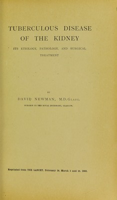 Tuberculous disease of the kidney : its etiology, pathology, and surgical treatment / by David Newman.