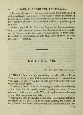 A tour performed in the years 1795-6 through the Taurida, or Crimea, the ancient kingdom of Bosphorus, the once-powerful republic of Tauric Cherson, and all the other countries on the north shore of the Euxine, ceded to Russia by the peace of Kainardgi and Jassy / By Mrs. Maria Guthrie ... described in a series of letters to her husband, the editor, Matthew Guthrie, M.D. The whole illustrated by a map ... with engravings of a great number of ancient coins, medals, monuments, inscriptions, and other curious objects.
