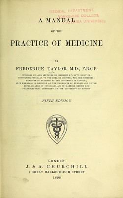 Credit: A manual of the practice of medicine / by Frederick Taylor. Source: Wellcome Collection.